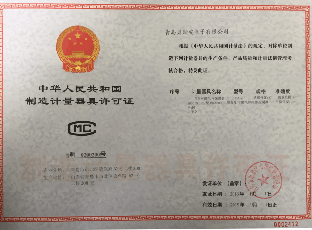 我公司是青島市具有國(guó)家質(zhì)量技術(shù)監(jiān)督部門頒發(fā)的計(jì)量器具生產(chǎn)許可證的生產(chǎn)企業(yè);獲得國(guó)家防爆電氣產(chǎn)品質(zhì)量監(jiān)督檢驗(yàn)中心頒發(fā)的防爆合格證;獲得國(guó)家公安部消防產(chǎn)品合格評(píng)定中心頒發(fā)的消防產(chǎn)品形式認(rèn)可證書(shū)。